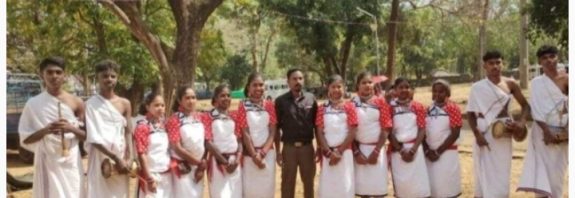 തൃശൂർ: സംസ്ഥാന സ്കൂൾ കലോത്സവത്തിൽ ഏച്ചോം സർവോദയ ഹയർ സെക്കൻഡറി സ്കൂൾ ആദ്യദിനം നടന്ന പണിയ നൃത്തത്തിൽ എ ഗ്രേഡ് നേടി. ഗോത്രകലയുടെ ആദിമതാളത്തിൽ ചുവടുവച്ച വിദ്യാർഥികൾ