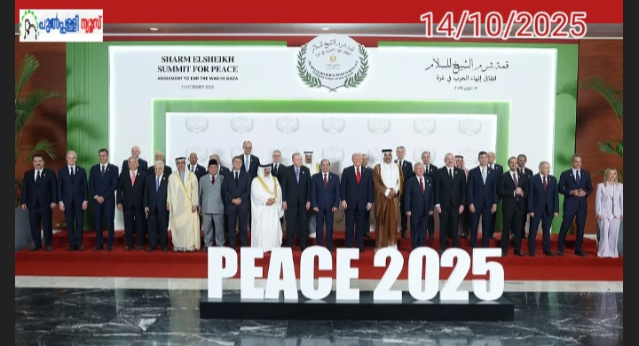 കയ്റോ: ഇസ്രയേൽ- ഹമാസ് വെടി നിർത്തലിനുള്ള സമാധാനക്കരാറിൽ അമേരിക്കൻ പ്രസിഡന്റ് ഡോണൾഡ് ട്രംപ് ഒപ്പുവച്ചു. ഈജിപ്റ്റിൽ ട്രംപിന്റേയും ഈജിപ്റ്റ് പ്രസിഡന്റ് അബ്ദുൽ ഫത്താഹ് അൽ സിസിയുടേയും അധ്യക്ഷതയിൽ നടന്ന ഉച്ചകോടിയിലാണ് സമാധാനക്കരാറിനു ധാരണയായത്. ഇരുവർക്കും പുറമേ തുർക്കി, ഖത്തർ രാജ്യങ്ങളുടെ പ്രതിനിധികളുടേയും മധ്യസ്ഥതയിലാണ് കരാർ സാധ്യമായത്. ട്രംപിനെ കൂടാതെ വിവിധ ലോക നേതാക്കളും ഉച്ചകോടിയിൽ പങ്കെടുത്തു. ഇസ്രയേൽ, ഹമാസ് പ്രതിനിധികളും ഇതിൽ ഒപ്പിട്ടതോടെ രണ്ട് വർഷത്തോളം നീണ്ടു നിന്ന യുദ്ധവും അവസാനിച്ചു. യഹൂദ വിശ്വാസപ്രകാരം അവധി ദിനമായതിനാൽ ഇസ്രയേൽ പ്രധാനമന്ത്രി ബെഞ്ചമിൻ നെതന്യാഹു ഉച്ചകോടിയിൽ പങ്കെടുത്തില്ല.