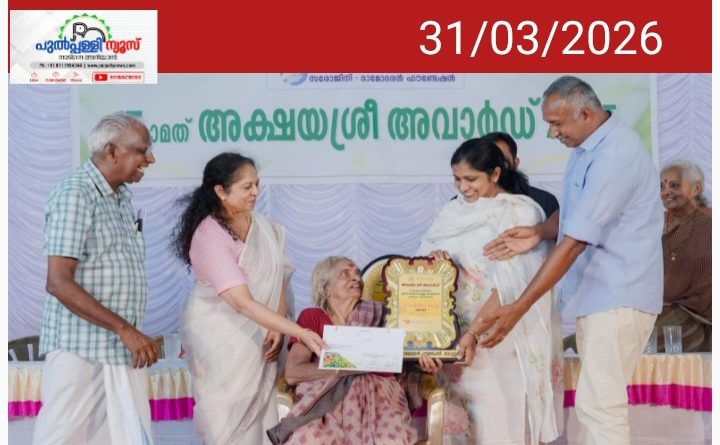 കേരളത്തിലെ ഏറ്റവും മികച്ച ഓർഗാനിക് കർഷകനുള്ള അക്ഷയ ശ്രീ ഇന്നവേറ്റീവ് കർഷക അവാർഡ് പുൽപ്പള്ളി, ശിശുമല സ്വദേശി റോയ് ആന്റണി കവള കാട്ട് ഏറ്റുവാങ്ങി.